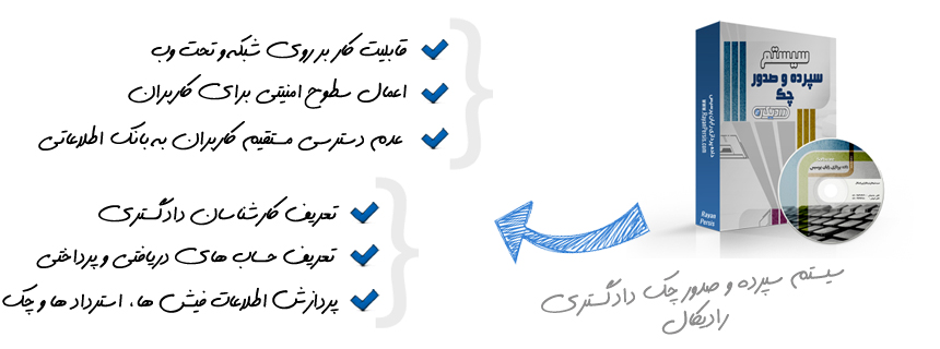 سیستم سپرده و صدور چک رادیکال ، نیز به همین منظور طراحی شده است و به مدیران ادارات دادگستری در مدیریت عملیات مرتبط با سپرده در کوتاهترین زمان و با پرهیز از خطاهای احتمالی کمک میکند. می شود.