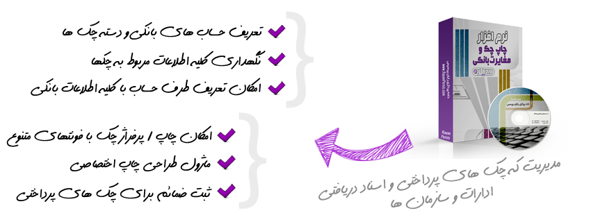 سازمان ها را مدیریت می نماید . هدف اصلی این نرم افزار چاپ مطمئن و بدون خط خوردگی انواع چک می باشد.
